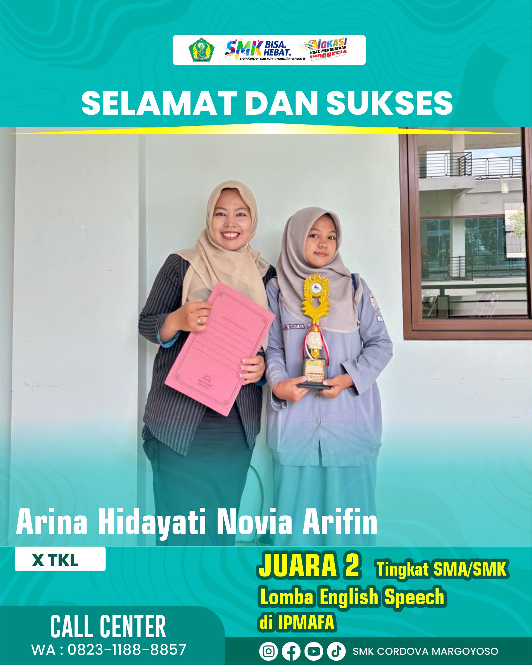Prestasi ini menjadi bukti bahwa siswa SMK mampu berprestasi, percaya diri, dan bersaing di tingkat umum dengan kompetensi yang unggul. Semoga pencapaian ini menjadi motivasi untuk terus mengembangkan potensi, meraih prestasi yang lebih tinggi, serta mengharumkan nama sekolah.